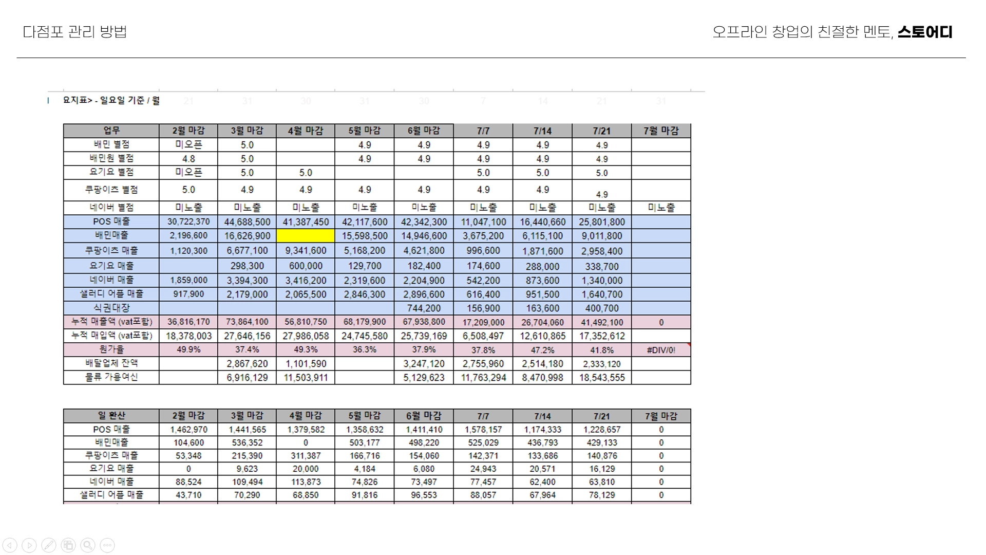고매출 매장 운영 경험